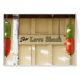 Foto original de um sinal "The Love Shack" com flutuadores verdes e laranja brilhantes pendurados nas laterais