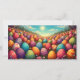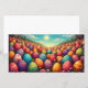 An endless field of beautifully painted Easter eggs glows under a soft sun. The cheerful colors and playful patterns of the eggs spread an atmosphere of joy and security. Colorful spring flowers bloom between the eggs and complete the peaceful, dreamlike scenery. A place full of magic that awakens childhood memories and the anticipation of Easter.