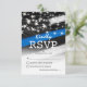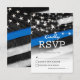 Cartões de resposta com tema policial apresentando uma bandeira dos EUA com a thin blue line, luzes de corda e um modelo de RSVP para autoridades que é fácil de personalizar.