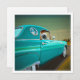 Thunderbird - Carro clássico azul-quente retrógrado com astronauta dando um 'polegar para cima' e um pequeno robô bonito espreitando pela janela do círculo traseiro. Esta ilustração de Cindy Thornton Art foi originalmente um acrílico na pintura de canvas. A corrida espacial acabou!