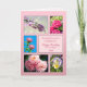 Um cartão de aniversário para uma tia. Mande lindas flores para uma pessoa bonita. Um cartão de aniversário com um belo sentimento. Uma coleção de imagens enquadradas de flores em um fundo rosa.