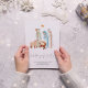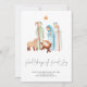 Glad Tidings Excelente Joy Natividade Holiday Card Uma bela cena simples de natividade, com Mary, José e Jesus bebê em um mangueiro, e um pastor com suas ovelhas e uma linha da carol, enquanto Shepherds Observavam Seus Incêndios À Noite, em um roteiro elegante sobre um fundo branco para um sentimento contemporâneo. Personalize facilmente a sua saudação e os seus nomes no fundo. O plano de fundo azul de coordenação do outro lado pode ser alterado para outra cor, se preferido, através da opção personalizar mais.