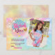 Procurando o cartões de agradecimentos de festa de aniversário de corante de gravata perfeito e legal? Peguem essa mão tensa pintada de tinta gravata pastel unicórnio e arco-íris, adicione sua foto