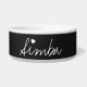 As bacias conhecidas personalizadas para animais de estimação são criadas "o giz branco em um estilo no conselho preto". Há um coração branco colocado sobre "mim". Se seu nome de animal de estimação não me tem "" na soletração, esta imagem do coração pode ser removida ou simplesmente ampliado e colocado em outra parte na caneca.