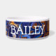 Túmulo de comida azul e castanho colorida de arte fluida. Adicione o nome do seu cão ou gato na área de personalização.