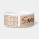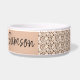 Para cães na moda, esta tigela de cães apresenta uma moderna colagem de desenhos animados de cães e uma fotografia do seu esquimó americano e do nome do cão. Personalize com o nome do seu animal de estimação - altere também a fonte e a cor ou adicione a sua própria foto. Tem de ser uma foto tirada à cabeça com um fundo transparente. Edite o design se precisar ajustar a foto.