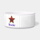 as classes da obediência são para a bacia customizável do buldogue dos Wimps. Esta bacia vermelha e branca engraçada do alimento para cães ou da água tem o texto da "classes obediência é para Wimps" com um cão engraçado do touro dos desenhos animados que funciona em torno da bacia e de uma estrela do vermelho e do ouro com o símbolo da anarquia na parte traseira. Aperfeiçoe para todos os amantes do cão ou do animal de estimação especialmente aqueles com um cão impertinente. Adicione seu próprio nome de animal de estimação para um presente inteiramente customizável e personalizado do animal de estimação ou do cão.