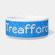 Grande tigela de cão com nome que pode ser mudado, azul e cinza com coração.