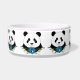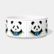 Retrato de um urso Panda fofo com uma flor de lótus azul num pano de fundo verde