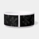 Esta bacia cerâmica do alimento para cães tem uma cor damasco preta e cinzenta no fundo. No meio, há um grande osso de prata sparkly com um nome facilmente personalizado de seu cachorrinho escrito no preto.