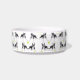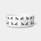 O teste padrão original das belas artes de cães bonitos de Boston Terrier e de suas bolas de tênis amados pelo artista/desenhista Carolyn McFann do estúdio de ronrom de dois gatos imprimiu em uma bacia do alimento para cães da qualidade.
