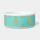 Bacia cerâmica branca do alimento para cães/água feita na turquesa, em torno da parte externa, com um teste padrão do abacaxi do ouro. Personalize o texto feito sob encomenda para seu animal de estimação ou como uma grande ideia do presente para todo o proprietário do animal de estimação.
