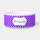 Prato à moda do alimento para cães feito com uma banda roxa e branca das bolinhas, em torno do prato, e uma área de texto decorativa branca, no meio para seu nome de animal de estimação. O texto feito sob encomenda roxo do divertimento permite que você personalize com seu nome de animal de estimação, porque uma bacia personalizada seu cão pode ser orgulhosa de. Faz uma grande ideia do presente.