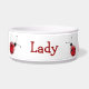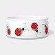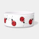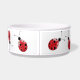 Prato bonito do alimento para cães feito com os gráficos bonitos de joaninhas vermelhos e pretos toda em torno do prato cerâmico branco. Personalize o texto vermelho para uma bacia que personalizada seu cão pode ser orgulhoso de. Faz uma grande ideia do presente.