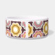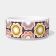 Esta bacia cerâmica do alimento para cães tem alguns vintage/flores retros que são ouro, rosa, roxo, e branco no fundo. No meio, há um grande osso branco com um nome facilmente personalizado de seu cachorrinho escrito no roxo.