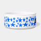 Bacia Sparky do cão, com fundo das estrelas azuis