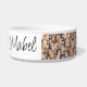 Para cães na moda, esta tigela de cães apresenta uma moderna colagem de desenhos animados de cães e uma fotografia do seu Cachorro Basset e do nome do cão. Personalize com o nome do seu animal de estimação - altere também a fonte e a cor ou adicione a sua própria foto. Tem de ser uma foto tirada à cabeça com um fundo transparente. Edite o design se precisar ajustar a foto.