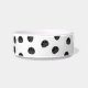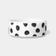tigela de gato preto com pegadas e um gato curioso olhando da base. Também disponível para gatos e cinzas gengibres.