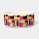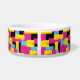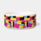 Um padrão de blocos coloridos ousado, brilhante, geométrico, com retângulos de tinta esbranquiçada, texturizados, esbranquiçados e quadrados em ciano, magenta e amarelo contra fundo preto.