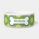 Uma tigela de comida de cão super fofa com bolas de tênis e osso de cão divertidas com o nome do seu cão no osso.