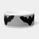 Esta incrível tigela de estimação apresenta um bastão vampiro assustador com olhos mau vermelhos e presas brancas agudas. Esta design divertida é perfeita para o Dia das Bruxas e deveria divertir as crianças e os adultos.