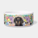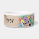 Para cães na moda, esta tigela de cães apresenta uma moderna colagem de desenhos animados de cães e uma fotografia do seu Saluki e do nome do cão. Personalize com o nome do seu animal de estimação - altere também a fonte e a cor ou adicione a sua própria foto. Tem de ser uma foto tirada à cabeça com um fundo transparente. Edite o design se precisar ajustar a foto.