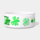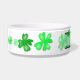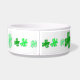 Adicione o nome dos seus cães irlandeses a esta tigela de cerâmica branca. Os shamrocks verdes decoram o exterior com uma área de placa para indicar o nome dos animais de estimação. Pode ser para um gato, um cão ou qualquer animal de estimação.