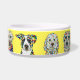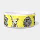 Uma tigela de cachorro que inclui muitos cachorros adoráveis! O Bowl foi criado das pinturas únicas e caprichosas de cães de Chris Ambrose. A tigela pode ser PERSONALIZADA para alterar a cor de fundo ou adicionar texto.