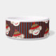 Esta tigela de comida de macaco-meia personalizável apresenta um fundo listrado vermelho, branco e azul e muitos macacos-meia! O osso do cão no centro tem um nome de exemplo, "Freckles", mas você pode mudá-lo para qualquer nome.