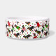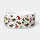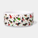 Cães girinos de Natal bonitos em roupas festivas de férias. Os rottweilers com casacos pretas e bronzeadas seguram canas doces, vestem chapéus de Papai Noel, chifres, suéteres com ornamentos espalhados.