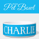 Uma tigela simples, branca e azul, para o seu cão ou gato.