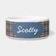 Xadrez marrom e azul bonito com uma placa conhecida azul. Personalize-a com seu nome de animal de estimação.