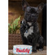 Crie o seu próprio nome personalizado, personalizado, ousado natal, vermelho-rústico, original, escrito ocidental / nome personalizado da tipografia, na frente e atrás, com três estrelas no meio e com a trendy legal geométrica da na moda de chic, azul-clara, cheques padrão padrão, cerâmica, cão de estimação, filhote de cachorros e filhotes de comida. Basta inserir o nome do seu animal de estimação / o seu texto, para personalizar. Excelente de aniversário, natal, feriados, anos novos e muito mais, para donos de cães/gatos, amigos e família de animais de estimação.