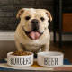 Esta tigela de cachorro minimalista apresenta a palavra "hambúrgueres" em texto negro em negrito em uma base cerâmica branca limpa. Projetado para amantes modernos de cães, ele combina estilo e humor em uma peça elegante e funcional. Perfeito para cães com atitude alimentar e pais de estimação que amam tendências, acessórios subestimados. Uma tigela de água correspondente com texto "cerveja" está disponível separadamente para completar a aparência.