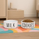 Essa tigela de cachorro minimalista apresenta a palavra biscoitos em texto negro em negrito em uma base cerâmica branca limpa. Projetado para amantes modernos de cães, ele combina estilo e humor em uma peça elegante e funcional. Perfeito para cães com atitude alimentar e pais de estimação que amam tendências, acessórios subestimados. Uma tigela de água correspondente com o texto "leite" está disponível separadamente para completar a aparência.