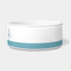 Uma tigela de estimação personalizada verde-verde-verde-cor-de-rosa mudada para a comida do seu cão ou gato ou água com uma fronteira de stripe moderna e minimalista e letras de letra fina de tendência com espaço para digitar no nome do seu animal de estimação.