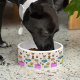 Nossa tigela de cachorro mostra ilustrações deliciosas de Daphsam, apresentando raças amadas como o Cavalier King Charles Spaniel, Chihuahua, Labrador e Pug.