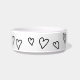 Desenho simples, preto e branco, de Dachshund bonito em combinação com corações desenhados à mão e nome personalizado. Uma tigela de estimação única, humorística, adorável, monificada, perfeita para um cão de estimação.
