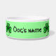 Belos montes de sorte em verde brilhante com uma elegante borda negra com um fundo verde numa comida de cão para personalizar com o nome do seu cão. Eu realmente adoro como isso aconteceu.
