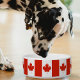 O Canadá vermelho e branco liga-se à bandeira canadense e ao padrão das folhas do mapa.