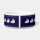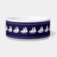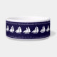 A tigela de cachorro é mostrada em branco com uma fita de sotaque azul-marinho com uma impressão giratória e âncoras. Tamanho Grande Mostrado Personalize este item ou comprar como está.