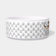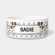 A ilustração original de um desenho animado de um cão casaco dinamarquês-sueco da raça Farmdog, castanho e branco. O plano de fundo tem um padrão de estampas de fileira de cinzas e há também uma área de texto personalizável para o nome do cão.