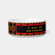 Pet Bowl cerâmico branco com círculos concêntricos de vermelho, preto e ouro, design acima de um retângulo preto e vermelho com "KANSAS CITY, MISSOURI" com logotipos Y-NOT-ME em segundo plano. Este design é um grito para Kansas City, Missouri, uma cidade de campeões. Personalize-o, adicione o nome do seu cão.