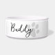 A pata mínima moderna imprime uma tigela personalizada de gato-de-gato. Apresentando impressão de cinza