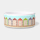 Conheça toda a nostalgia sobre sua viagem ao litoral com decoração colorida e presentes com a imagem tradicional de praia huts alinhados na praia.