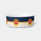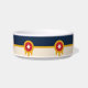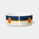 Pet Bowl com um design com a bandeira de Tulsa, Oklahoma. Uma bandeira azul bege e marinho com um escudo de Osage dourado contendo um círculo vermelho e uma estrela bege de seis pontas