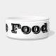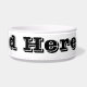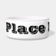 Esta tigela humorística de animais de estimação diz "Coloque a Comida aqui" em texto preto que você pode personalizar