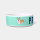 Esta tigela personalizada faz um presente de excelente para os donos de Corgi. Apresenta uma ilustração de um cão Pembroke Welsh Corgi contra um fundo verde da casa da moeda com o seu próprio nome ou mensagem curta.