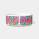 Corações bonitos dançam em torno deste robusto recipiente de cerâmica para animais de estimação. Disponível em dois tamanhos - médio e grande.