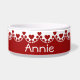 Corações e bolinhas do divertimento em um fundo vermelho brilhante. Que bacia do divertimento para seu membro especial da família! Personalize com sua escolha do texto conhecido ou favorito.